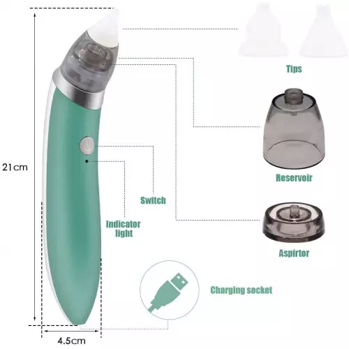 Устройството е безопасно за новородени и по-големи деца и е достатъчно мощно за да почисти ностната кухина за няколко секунди.