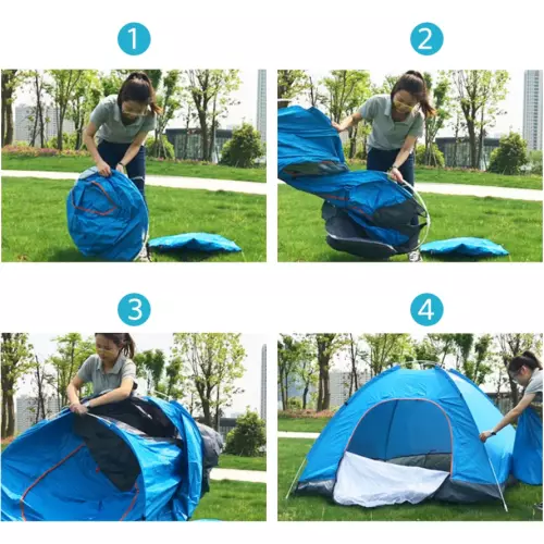 Палатката за къмпинг е двуместна и саморазпъваща се.