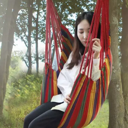 Лесен за окачване- Закачете я на кука, C-стойка или клон в задния си двор – където си изберете. След това сте готови за люлеене!
