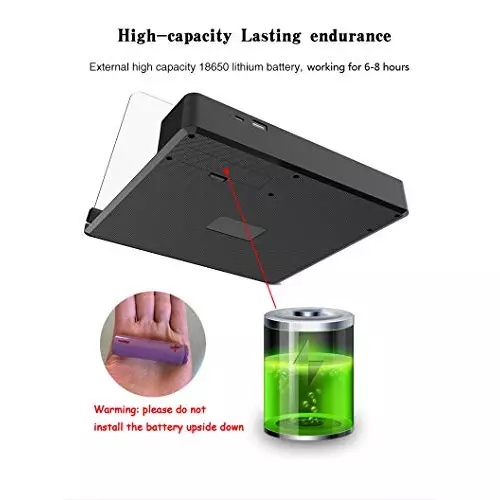 Пакетът включва: 1* лупа за екрана на телефона с Bluetooth високоговорител 1* 18650 акумулаторна батерия 1* USB кабел за зареждане 1* Ръководство за потребителя